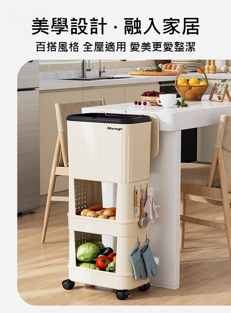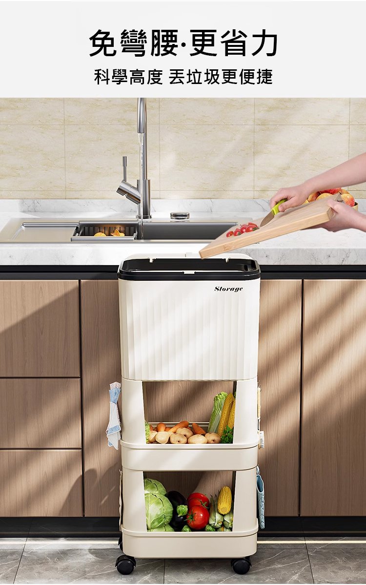 20分鐘前【不彎腰】家用可移動多功能置物垃圾桶 - 【超殺*贈20垃圾袋】1入組$279