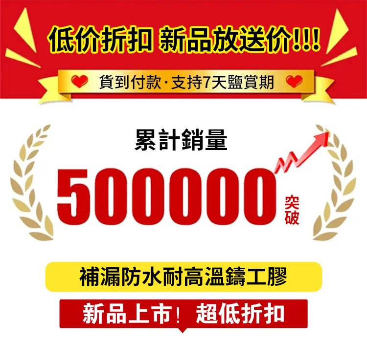 4分鐘前【補漏防水耐高溫】強力雙管鑄工膠 - 【賠殺】4件HK$299