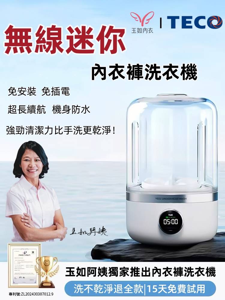12分鐘前玉如阿姨獨家推出TECO迷你洗衣機,一鍵啟動解放雙手含銀離子持久抑菌,小巧機身功能齊全整機防水防潮防濕 - 內衣內褲分開洗 限時特惠 二入組NT$1990